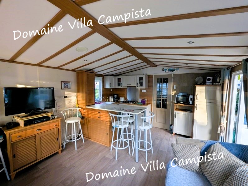 Mobil-home RIDOREV Galapagos, année 2007, 9 x 4 m, 34 m2, équipé (vaisselle, réfrigérateur-congélateur, four intégré, micro-onde, TV). 2 chambres : 1 chambre avec lit 140×190 et 1 chambre avec…